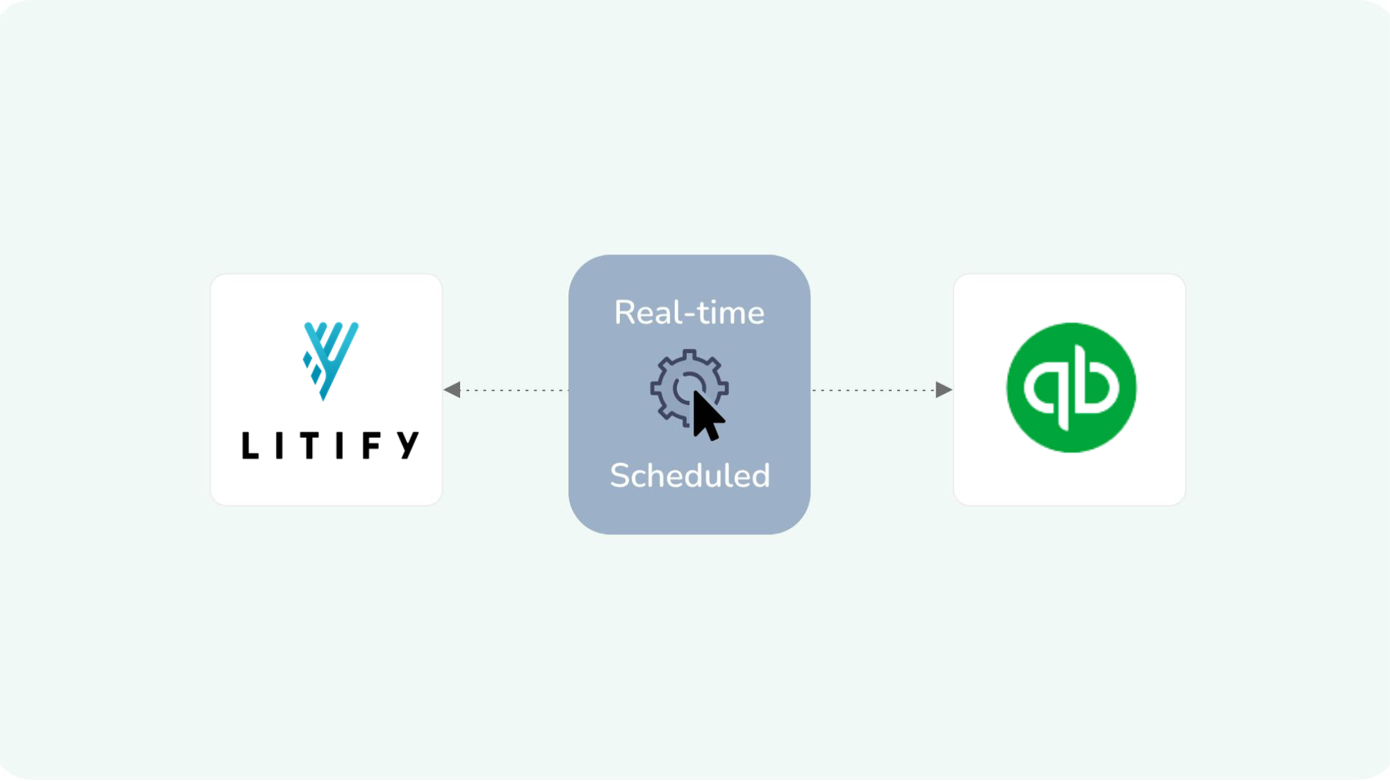 Data (clients, invoices, payments) syncs instantly or on a schedule between Litify and QuickBooks Online.
